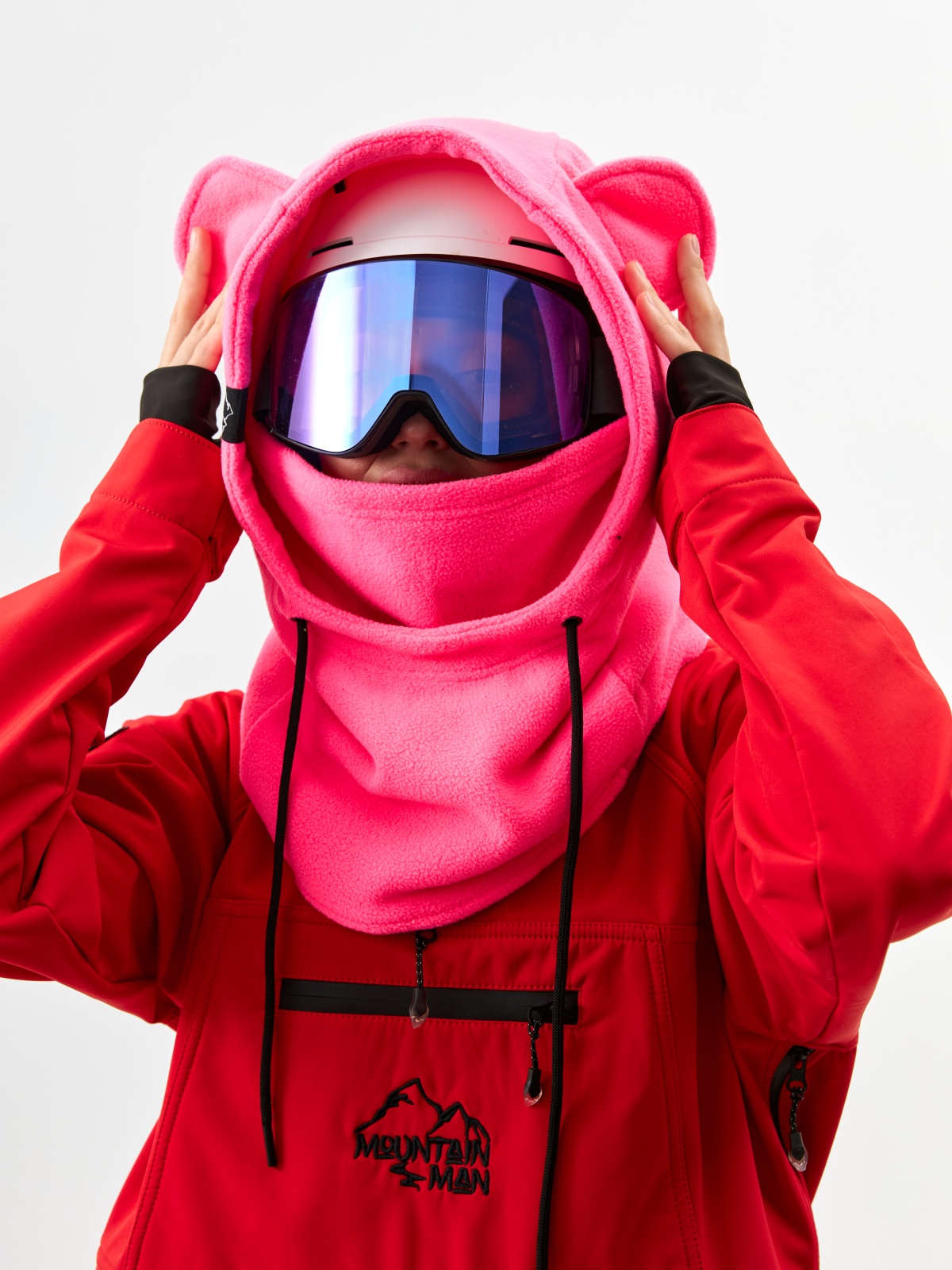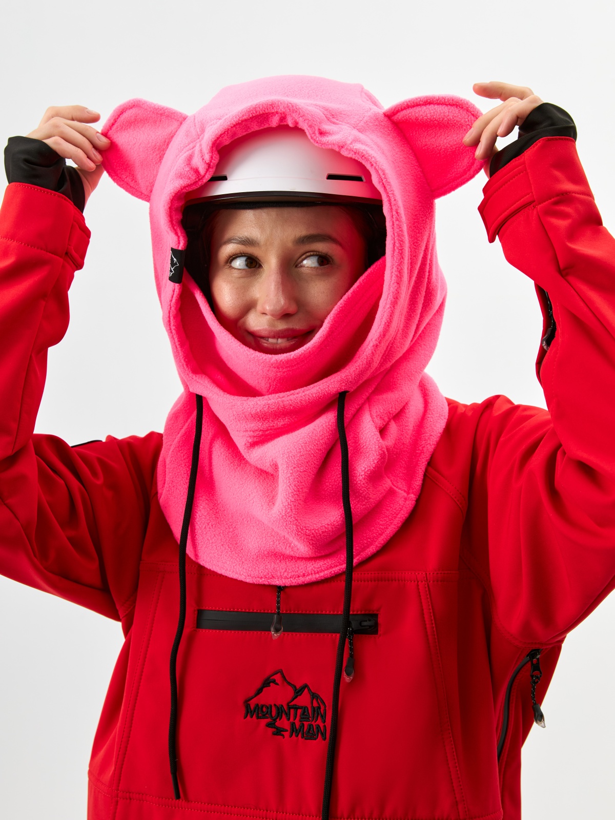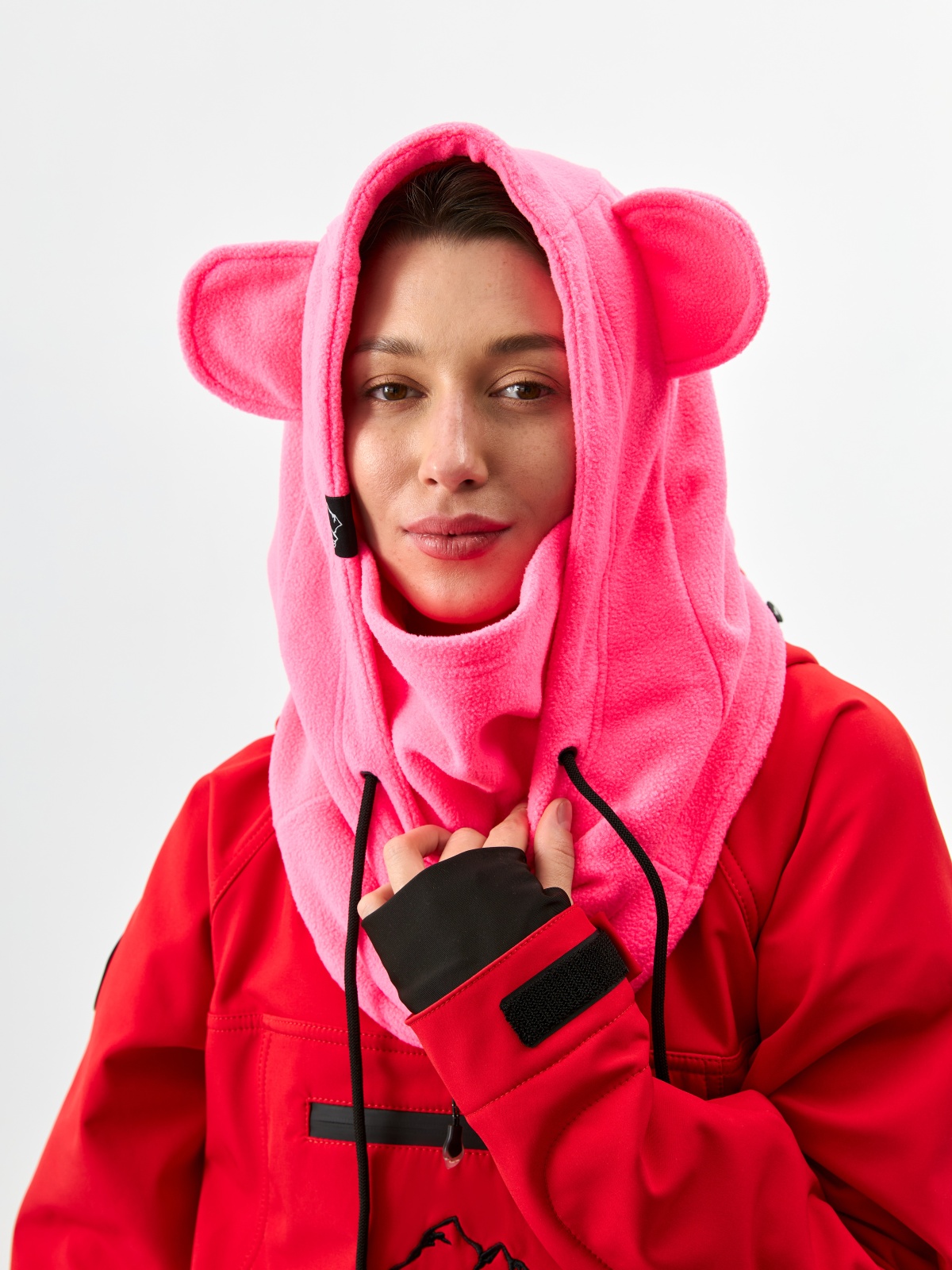 • Детали с характером: ушки медвежонка превращают балаклаву в запоминающийся элемент зимнего гардероба.