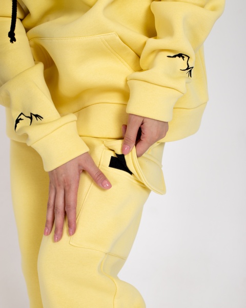Тёплые зимние джоггеры в лимонном цвете — отличный выбор для тех, кто ценит комфорт, тепло и стиль. Универсальный фасон подходит как мужчинам, так и женщинам. Благодаря плотному футеру с мягким начёсом (340 г/м²), джоггеры идеально подойдут для холодного времени года.