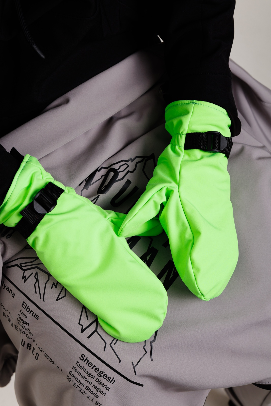 • Резинка и стропа на запястье: препятствуют попаданию снега внутрь варежек, обеспечивая дополнительную защиту.